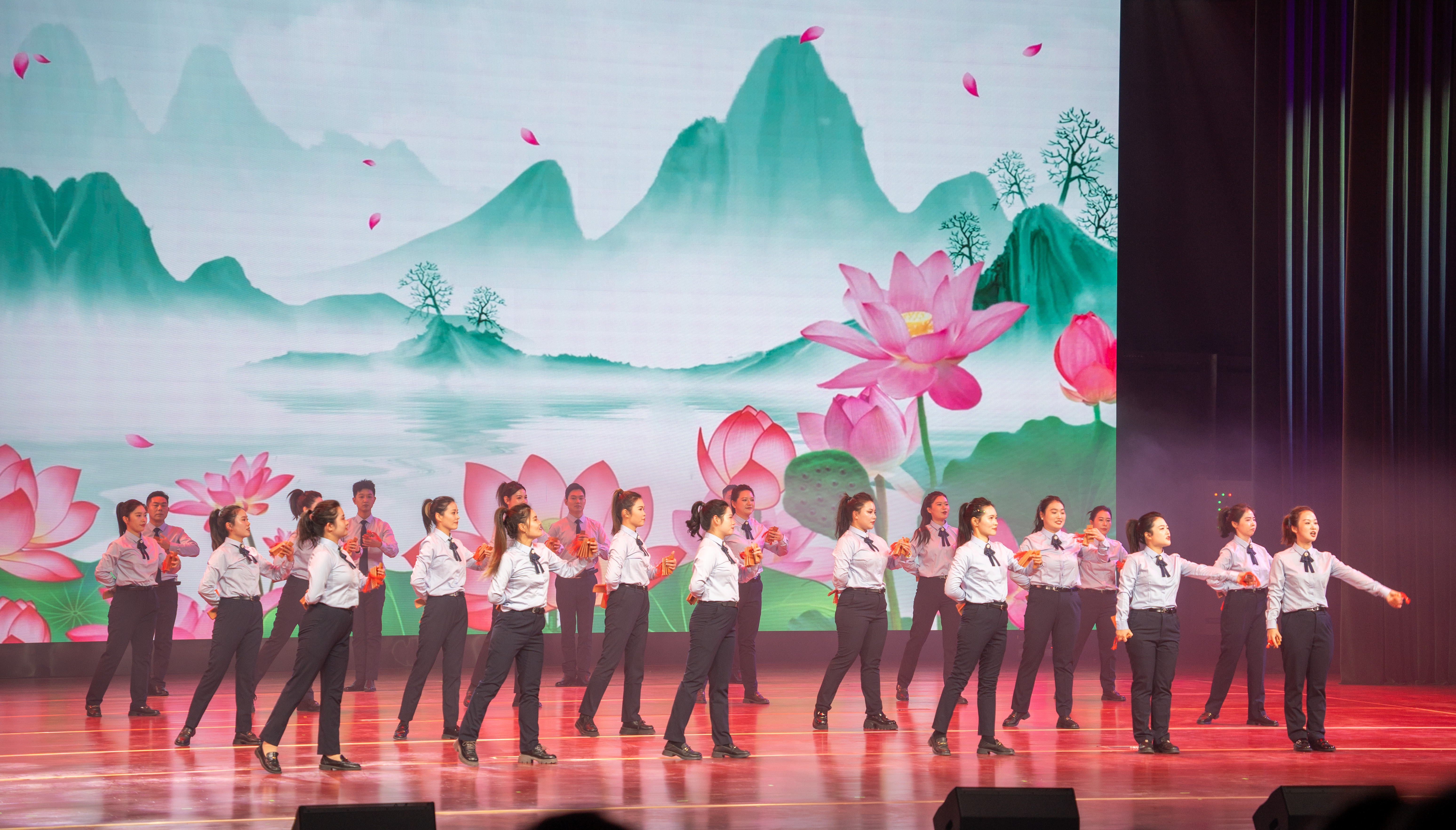 整场晚会紧扣“二十周年”主题,精心编排了情景朗诵、歌舞表演、合唱等多种艺术形式,回溯了集团创业初期的艰辛与坚守,也展现了新时代背景下国投集团改革转型、创新发展的昂扬姿态。节目三句半《国投骏马奔新程》以生动鲜活的表达方式,浓缩呈现集团二十年改革发展、实干担当的奋斗足迹,引发观众强烈共鸣。戏曲对唱《武家坡》唱腔婉转、韵味悠长,将传统艺术与时代主题巧妙融合;情景剧《停车奇遇记》取材身边、贴近实际,通过细腻演绎展现国投人在日常工作中服务群众、担当作为的精神风貌;AI《数字人》以科技赋能舞台表现,生动展现集团在数字化转型和创新发展方面的积极探索。演员们真挚投入的演绎,引发现场观众交口称赞,掌声此起彼伏,将晚会气氛一次次推向高潮。