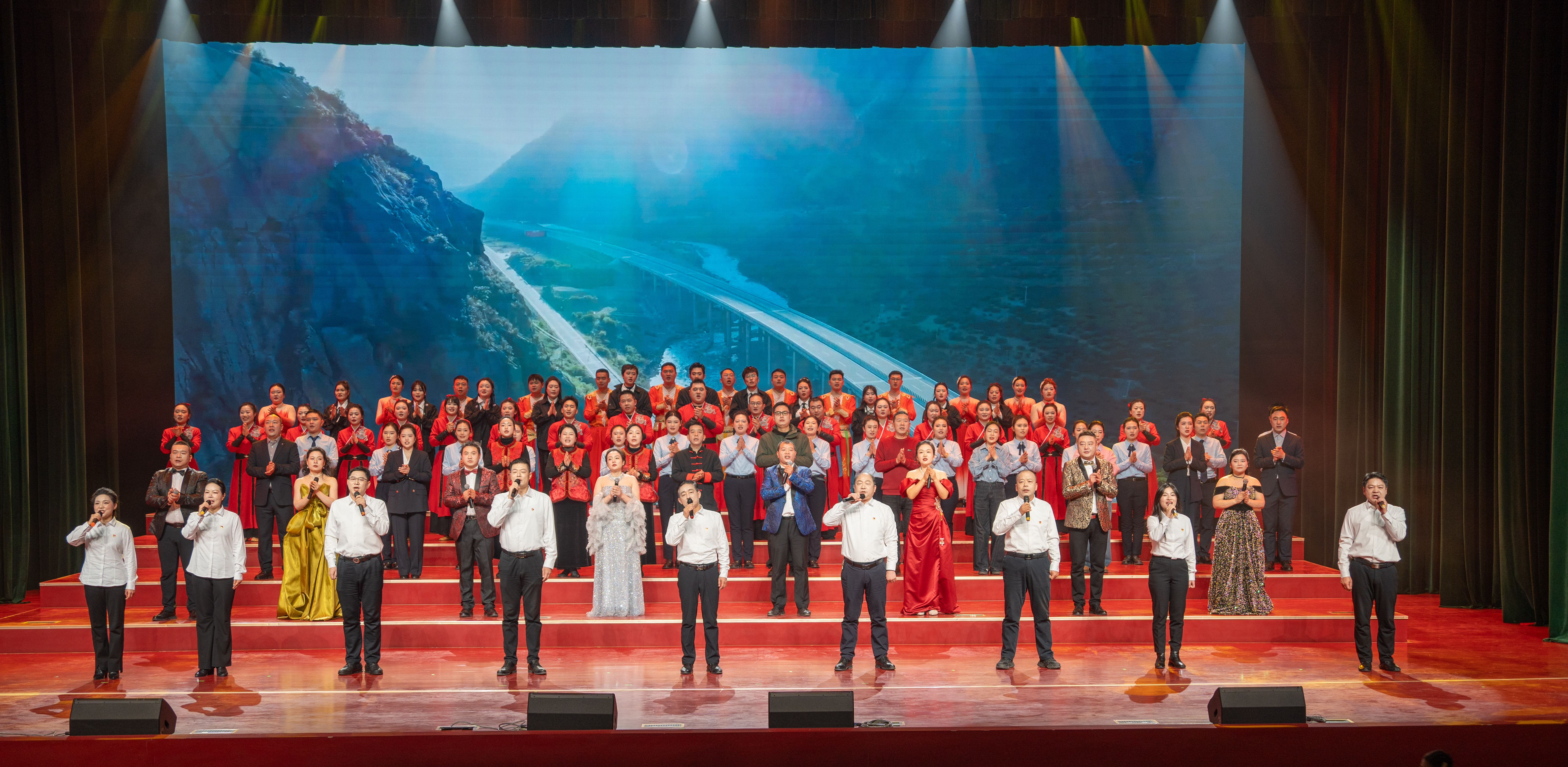 整场晚会在诗朗诵《甘载荣光铸初心 薪火相传向未来》和合唱《我爱你中国》《我们走在大路上》的激昂旋律中圆满落幕。铿锵有力的歌声,唱出了国投人不忘初心、接续奋斗的坚定信念,也表达了在新时代新征程上阔步前行的豪情壮志。